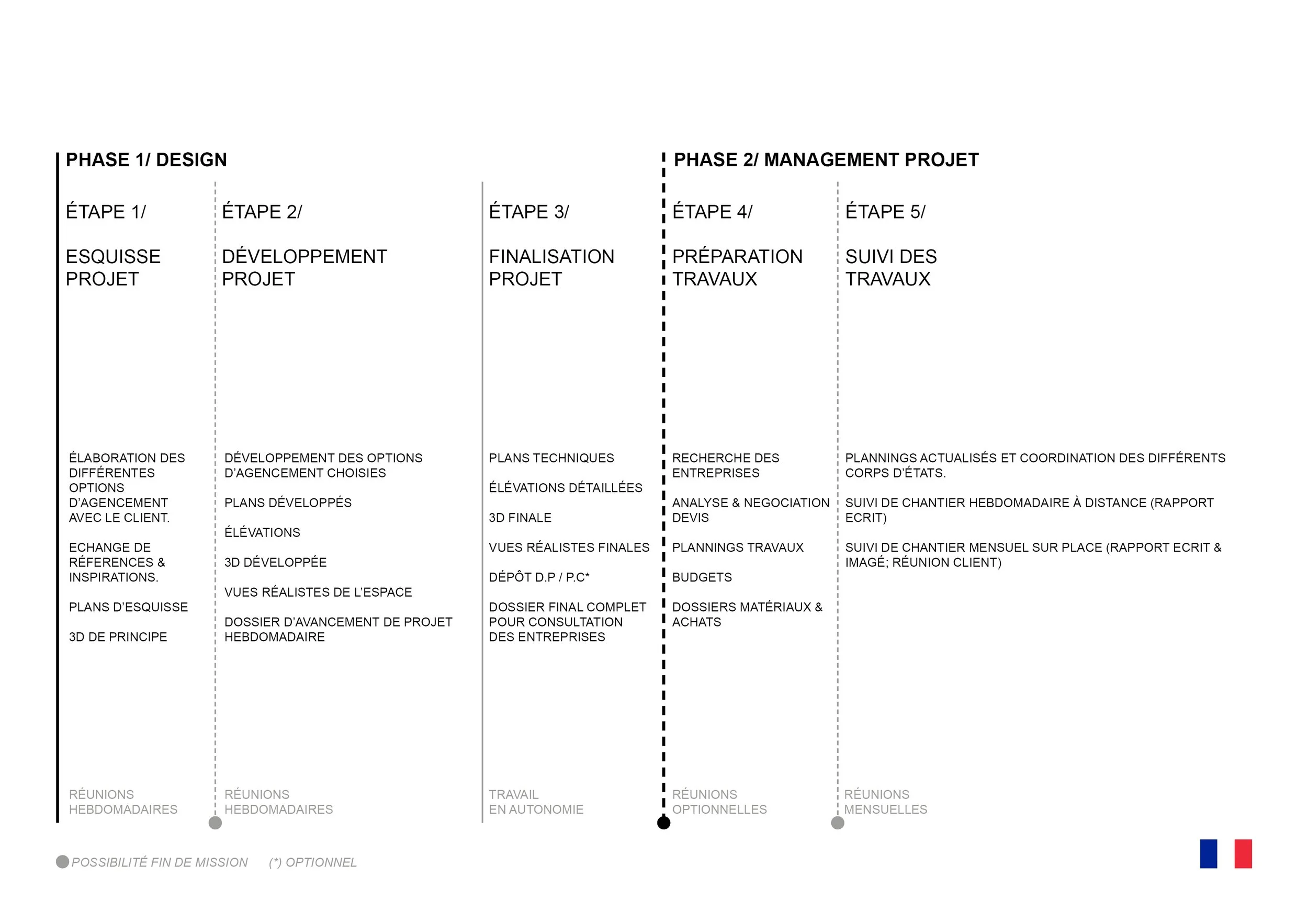 Tout commence par une idée, et nous pensons pouvoir vous accompagner dans ce processus grâce à nos services sur mesure, en restant flexibles dans nos options pour aboutir au meilleur projet et à une collaboration réussie. Vous trouverez ci-dessous notre processus de travail standard.