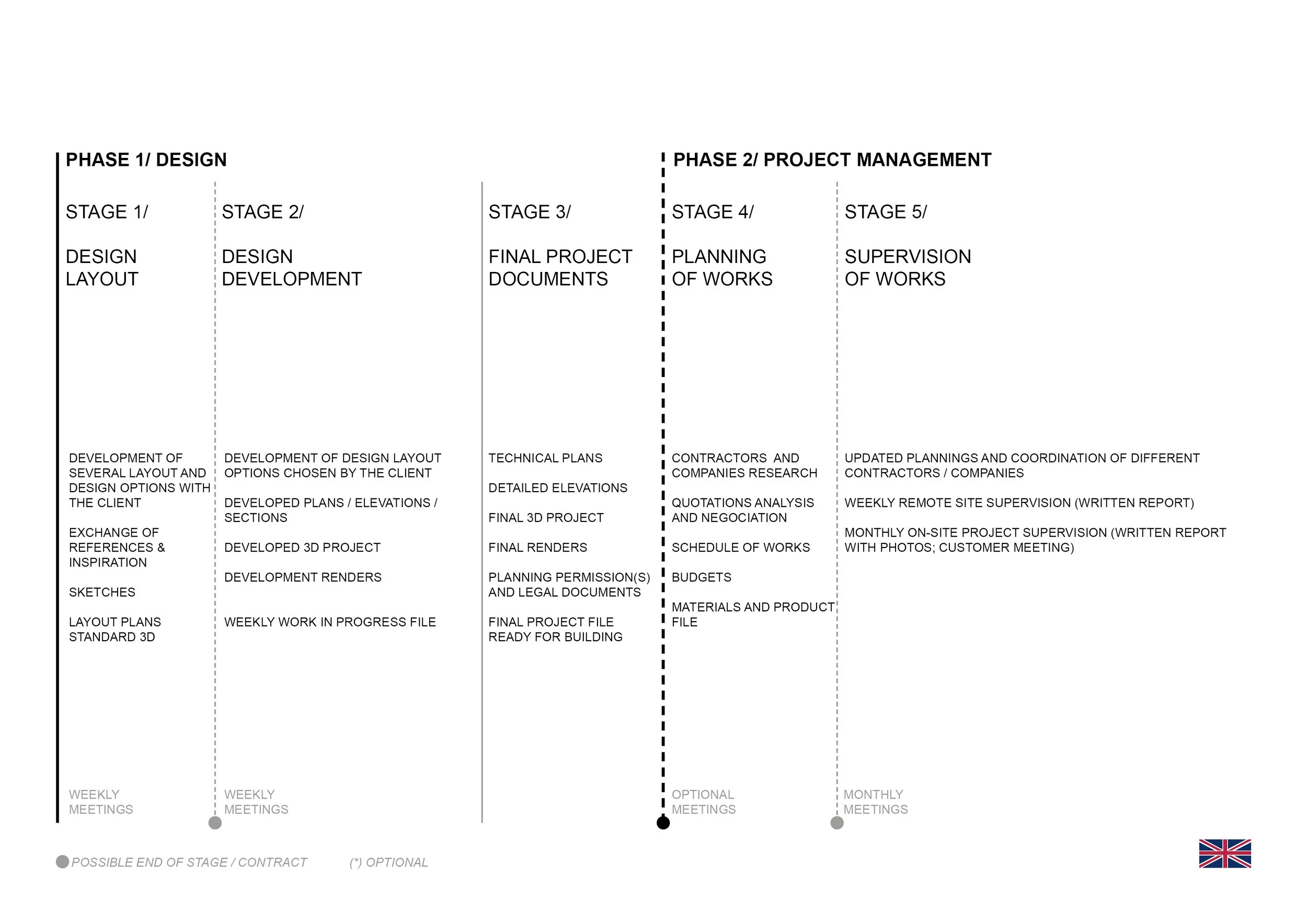 It all begins with an idea and we believe we can help you in this process with our tailored services, being flexible in our options to achieve the best project and collaboration. You can find bellow our standard working process.